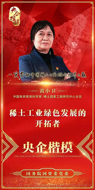 中國有研首席科學家稀土國家工程研究中心主任黃小衛院士榮獲“央企楷模”稱號!