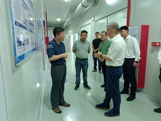 6月18日,國資委黨委主題教育第七巡回指導組組長賀禹帶隊到有研廣東院調研指導,通過下沉一線、座談交流、查閱資料等方式了解有研廣東院黨支部學習貫徹習近平新時代中國特色社會主義思想主題教育開展情況,要求不折不扣落實主題教育各項任務,切實把主題教育成果轉化為高質量發展成效。賀禹一行深入有研廣東院研發和生產現場,詳細了解了有研廣東院學習貫徹習近平總書記關于科技創新的重要論述,堅持科技自立自強,推進固態電池、鈉離子電池材料、燃料電池、新一代制儲運氫關鍵材料、儲氫材料與系統工程化、動力電池檢測、新一代傳感材料與器件、集成電路鍵合材料、電磁兼容材料設計及應用技術、公共檢測等技術創新情況。