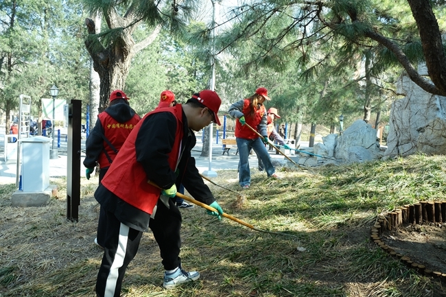 隨后,青年志愿者們在公園管理員的指導下開展綠植養護志愿工作。志愿者們用草耙將草坡中的殘枝敗葉耙出,收集成堆后再裝進垃圾袋進行處理。此次志愿團日活動受到了廣大團員青年的積極參與和熱烈好評,團員青年從中既學到了綠植養護的相關知識,又能將其付諸于勞動實踐。
