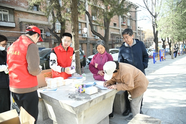 有研衛(wèi)生站的醫(yī)護人員為居民們提供了測量血氧、血壓,中醫(yī)測評等服務(wù)。職工青年和研究生志愿者積極開展法律咨詢、環(huán)保和反詐宣傳、幼兒教育咨詢,并為社區(qū)居民發(fā)放便民物品。
