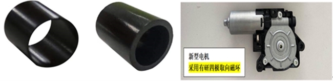稀土粘結磁體具有尺寸精度高、形狀自由度大、電阻率高等優點,是稀土永磁材料的重要組成部分。稀土粘結磁體主要制成電機轉子或定子,核心功能是提供恒定磁場,實現電能與機械能的相互轉換。本項目開發的高性能異方性稀土粘結磁體打破了國外長期壟斷,有效填補傳統同方性粘結磁體與燒結磁體間的性能空白,能夠支撐基礎機電部件輕量化、小型化和高能效化,為下游微特電機產業鏈、供應鏈的自主可控提供了有效支撐。基于此新材料開發的新型電機展現出輸出轉矩大、電機特性平穩、服役噪音小的優勢,且比傳統電機體積減少20%,重量降低30%。在新能源汽車、高端電動工具等戰略新興領域實現示范應用,在“雙碳”戰略推動下,有著廣闊的應用前景和市場需求。