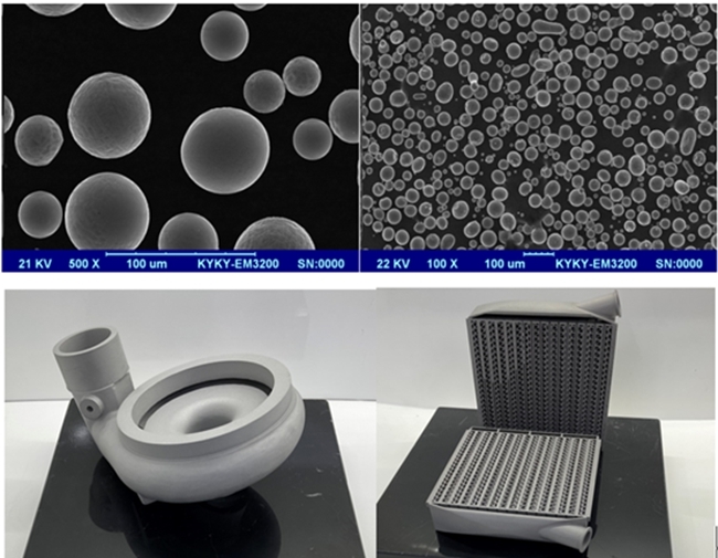 增材制造用高流動性鋁合金粉末產品開發技術具備運行成本低,粒度分布窄、粉末球形度好、氧含量易控制,可連續工業化生產等優勢,通過該技術生產粉末的成本降低50%以上。開發的高品質鋁合金粉末以3D打印用15-53μm AlSi10Mg為例,粉末流動性≤80s/50g,松比≥1.45g/cm³,振實密度≥1.65g/cm³,球形度≥97%,無衛星球和空心粉,即實現制備的粉末相對于市場現有粉末流動性提高>30%,松比、振實密度提高>15%,且氧含量可控制在300PPm,主要應用于在航空航天、大型飛機、船舶、汽車、新能源等領域。