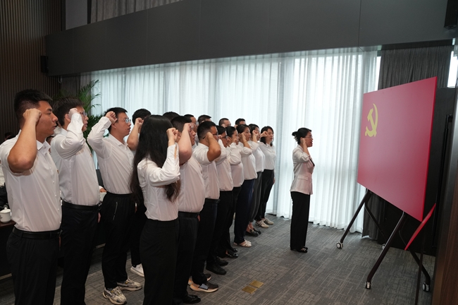 大會在莊嚴的國歌聲中拉開序幕,新發展黨員面向黨旗鄭重宣誓,許下為共產主義事業奮斗終身的堅定承諾。