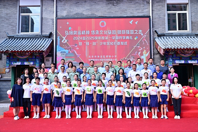 9月1日,中國有研副總經理毛昌輝一行受邀來到海淀民族小學參加開學典禮暨“和•融”少年文化衫首發式。