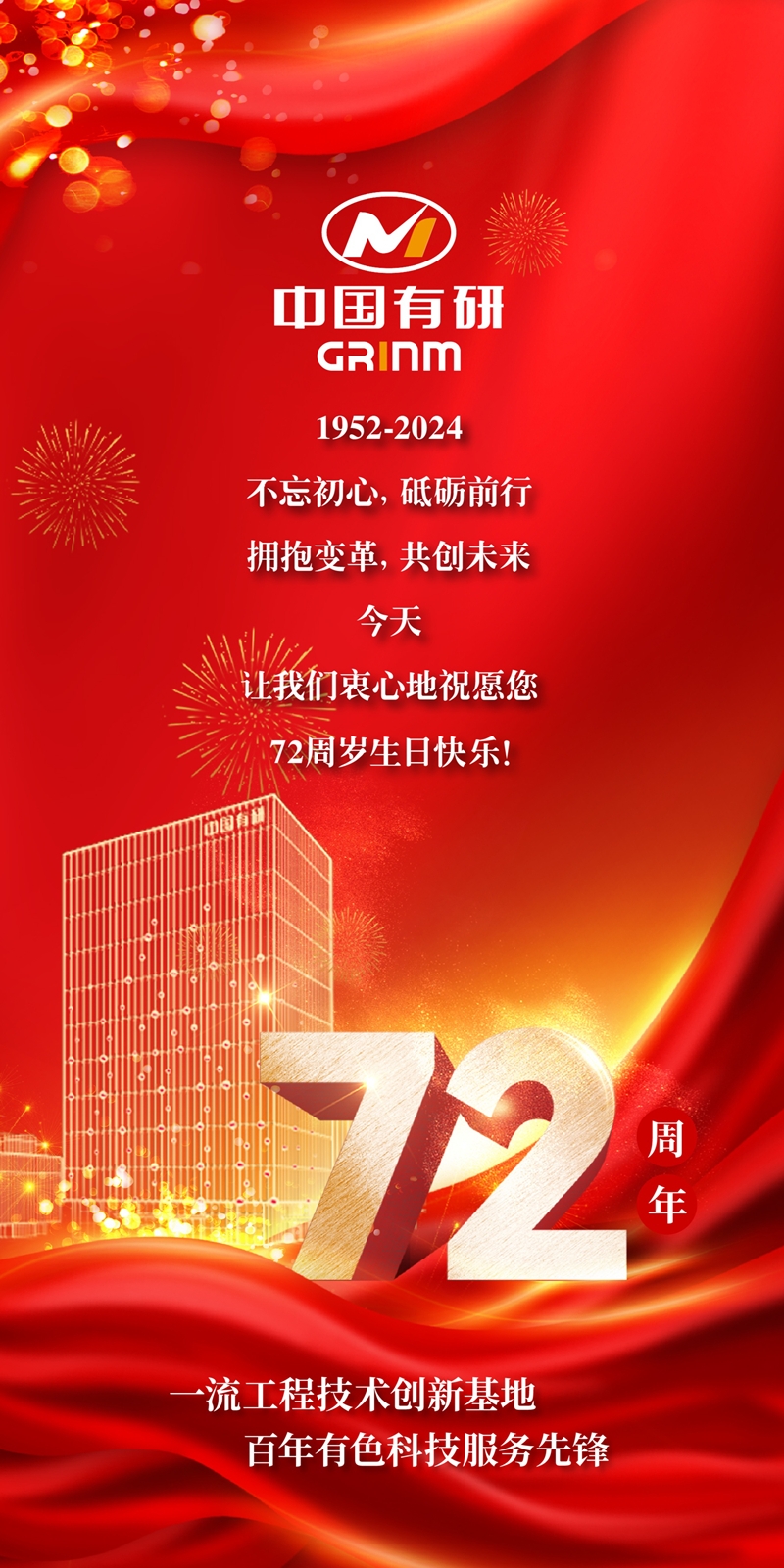 今天!慶祝中國有研成立72周年!