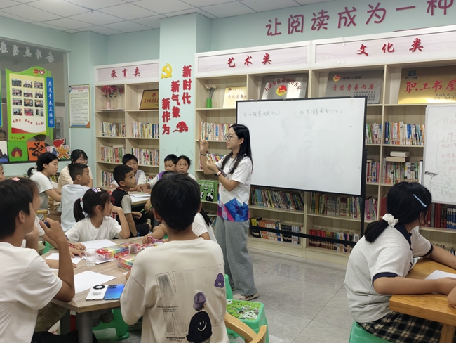 在語文課上,標點符號變身謎語,找字游戲暗藏玄機,作文像魔法畫筆,讓文字綻放光彩。在數學課上,志愿者通過數獨謎題帶領學生掌握邏輯推理的規則和技巧,感悟網格數字背后蘊含的數學之美與理性精神。在英語課上,志愿者通過希臘神話故事帶領學生學習單詞和短語,積累作文素材。在科學課上,師生共同感受大氣的魅力,開展“極速智途”智能小車競速賽編程及比賽,孩子們為自己在科學探索中取得的進步而欣喜。