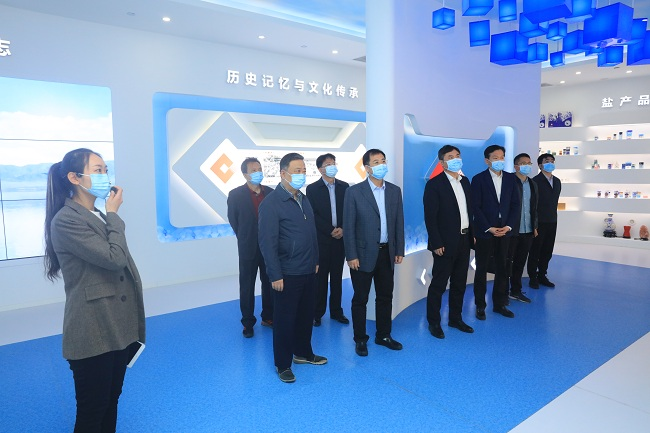 趙曉晨一行參觀了中鹽集團(tuán)展廳,了解了我國鹽行業(yè)的歷史和現(xiàn)狀、中鹽集團(tuán)的企業(yè)定位、戰(zhàn)略目標(biāo)、業(yè)務(wù)板塊、主要產(chǎn)品等。