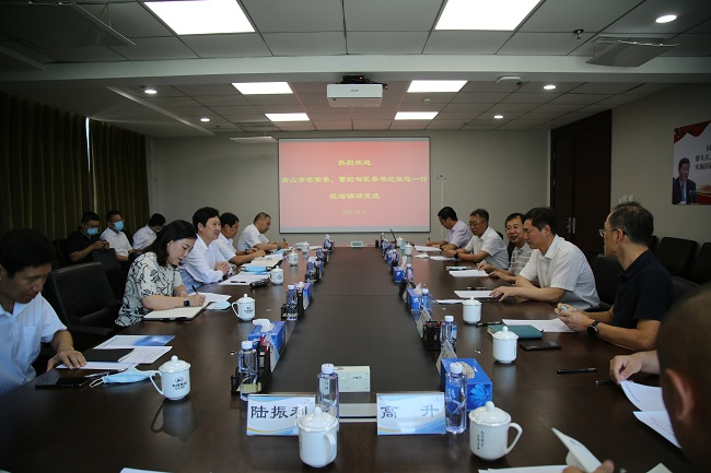 2022年8月11日,唐山市委常委、曹妃甸區委書記侯旭一行到訪有研集團,有研集團黨委書記、董事長趙曉晨,副總經理王興權陪同參觀展室并座談。